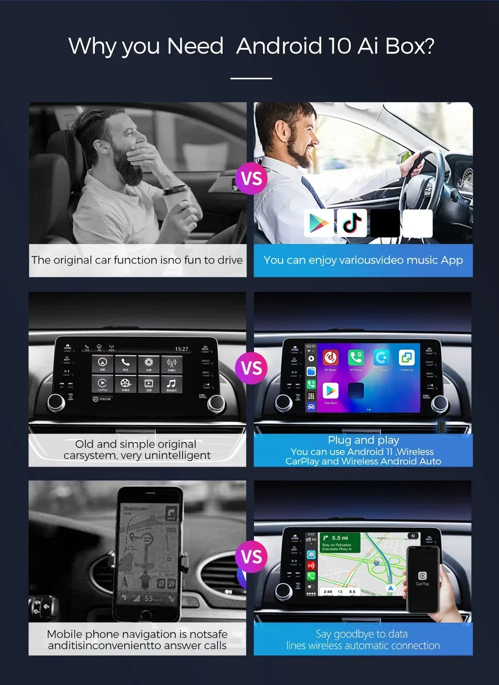 2024 Carplay AI BOX Wireless Android Auto Carplay TV Box Car Intelligent System 10 2GB+32GB For Mazda Volvo Benz Toyota Kia Ford