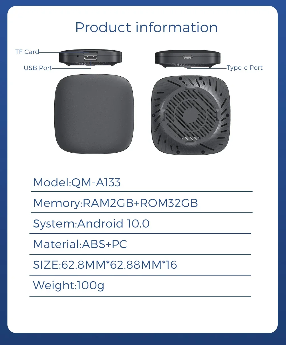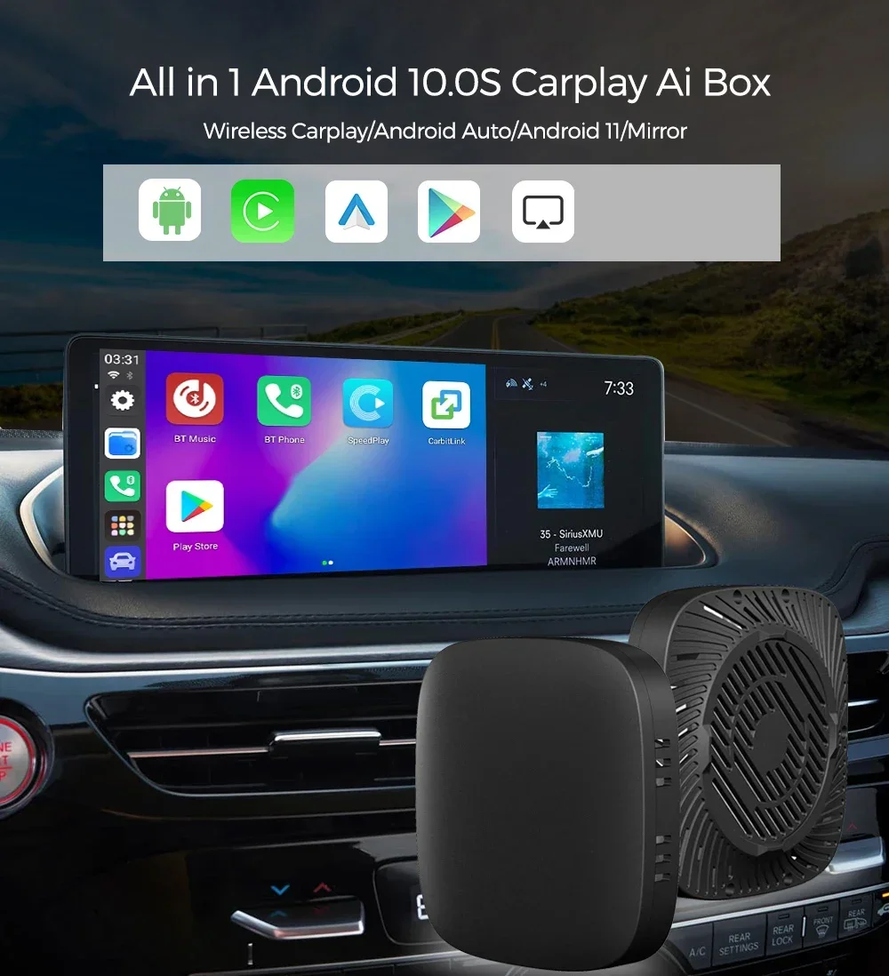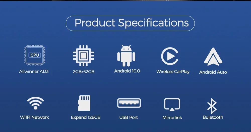 A133 adopts a chip with 2GB+32GB of memory, supports TF cards, and can be expanded to 128GB. The original wired single function has been changed to Android 10.0 system, and it also supports wireless Carplay/wireless Android Auto/wireless mirroring function., It also has the ability to play videos online and supports apps such as YouTube/Netflix.