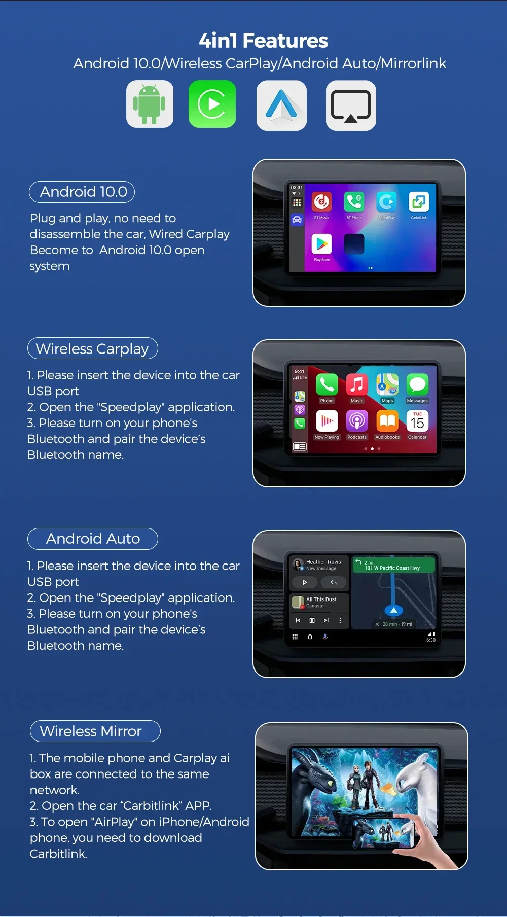 ✔️ Supports wireless Carplay/Android Auto/Mirrorlink